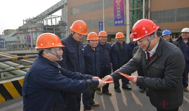 早上(shàng)9點,中信特鋼副總裁、青島特鋼總經理(lǐ)王君庭代表集團公司領導到(dào)一(yī)線生(shēng)産單位,☆看(kàn)望慰問(wèn)春節期間(jiān)奮戰在一(yī)線的(de)幹部職工(gōng),并送上(shàng)對(duì)廣✘大(dà)幹部職工(gōng)的(de)新年(nián)祝福和(hé)飽含濃厚感情的(de)紅(hóng)包,向大(dà)家(jiā)緻以新春的(de)問(wèn)候!青÷島特鋼高(gāo)級顧問(wèn)王慶賢和(hé)總經辦主任于波陪同慰問(wèn)。