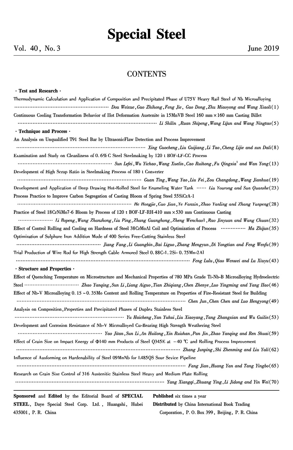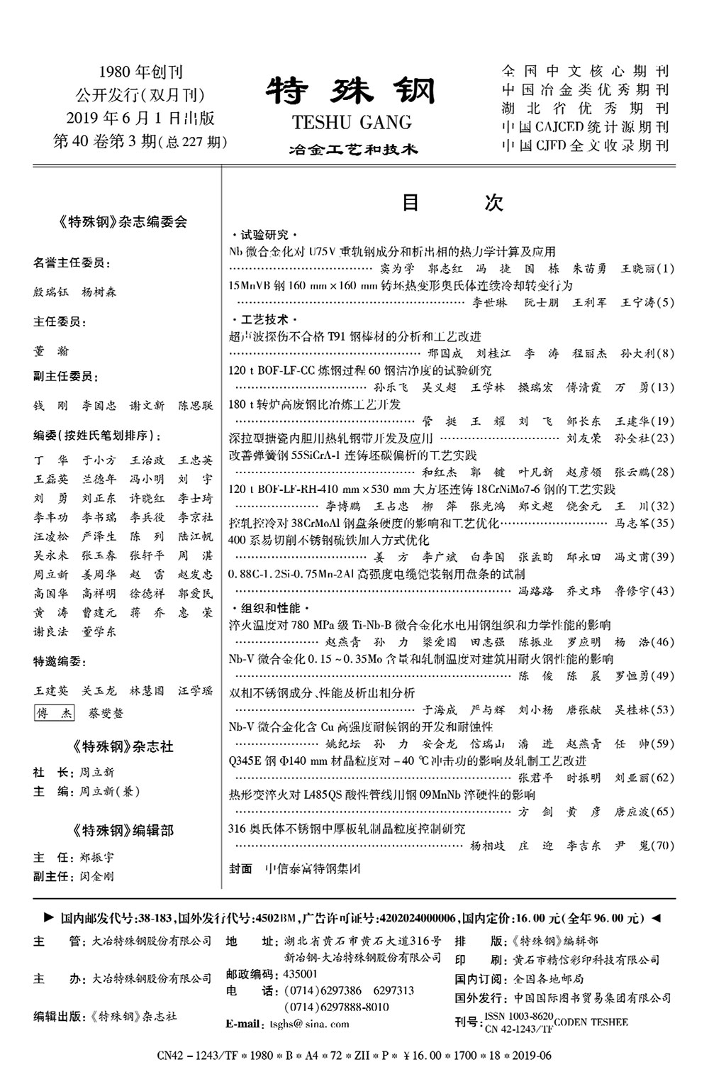 《特殊鋼》期刊 2019年(nián)第3期